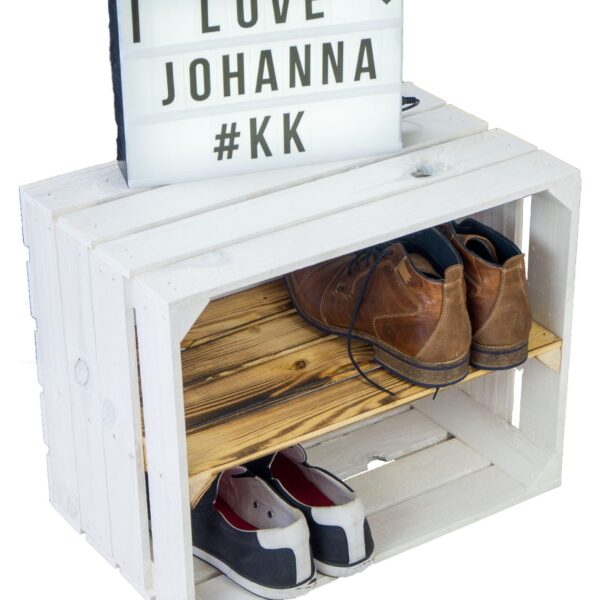 Etagère caisse à fruits BLANCHE « Johanna » avec panneau central flammé LONGUEUR